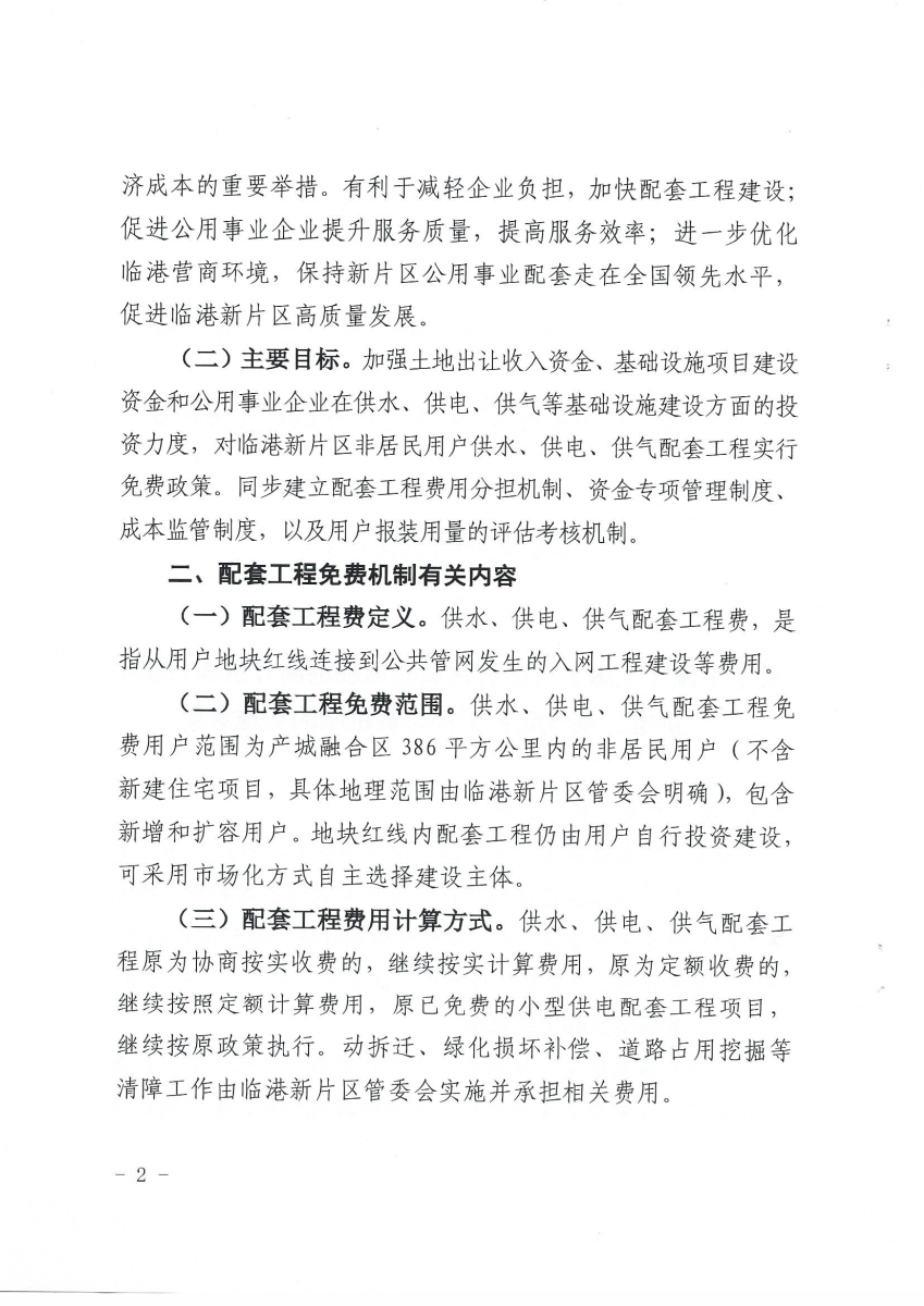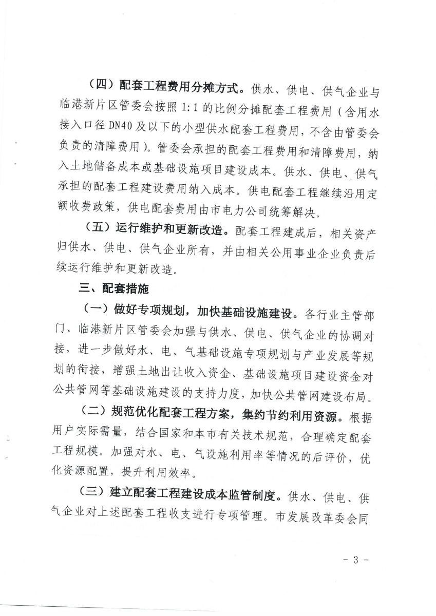 关于中国(上海)自由贸易试验区临港新片区实行供水、供电、供气配套工程免费机制的实施意见