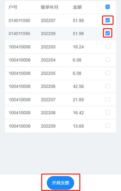 7、您可以根据需要选择合并开票或者单张开票,选择账单类型,同样也可以修改接收邮箱,确认无误后点击选择账单