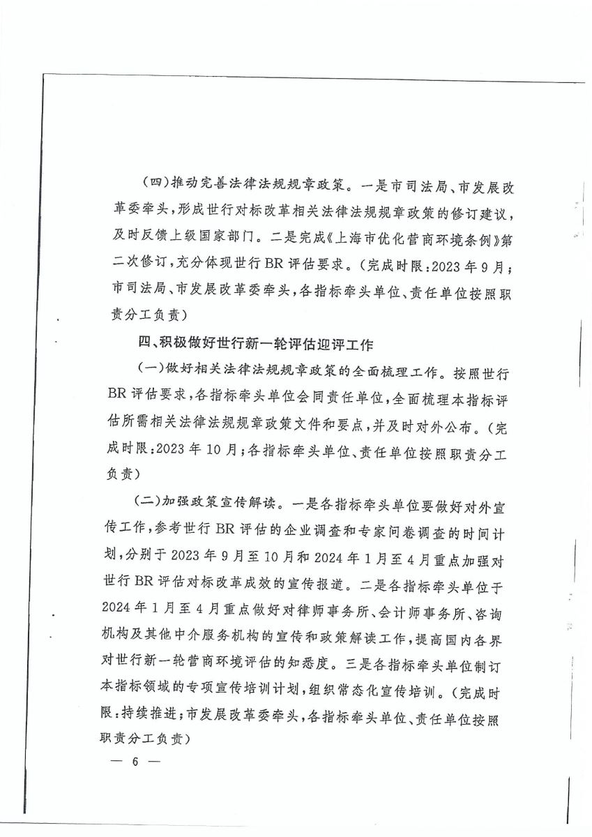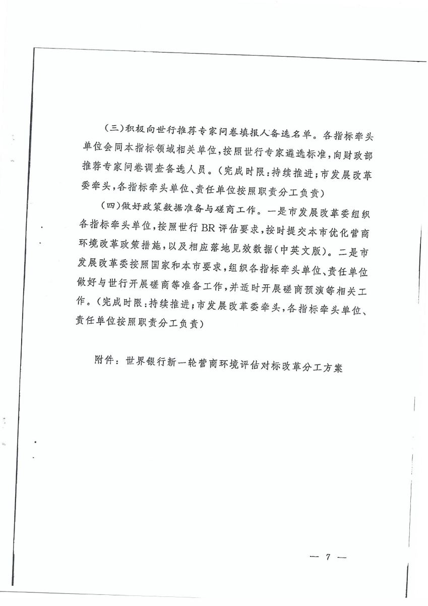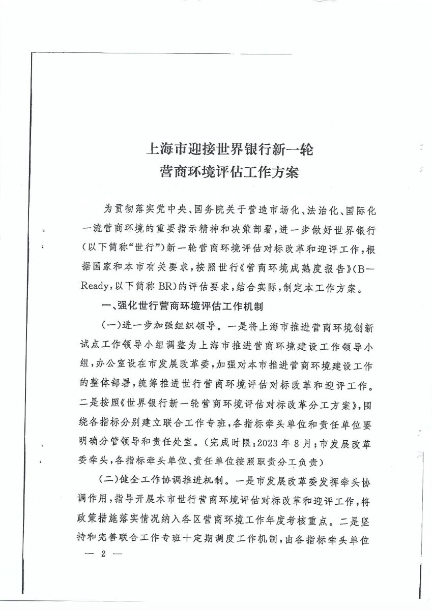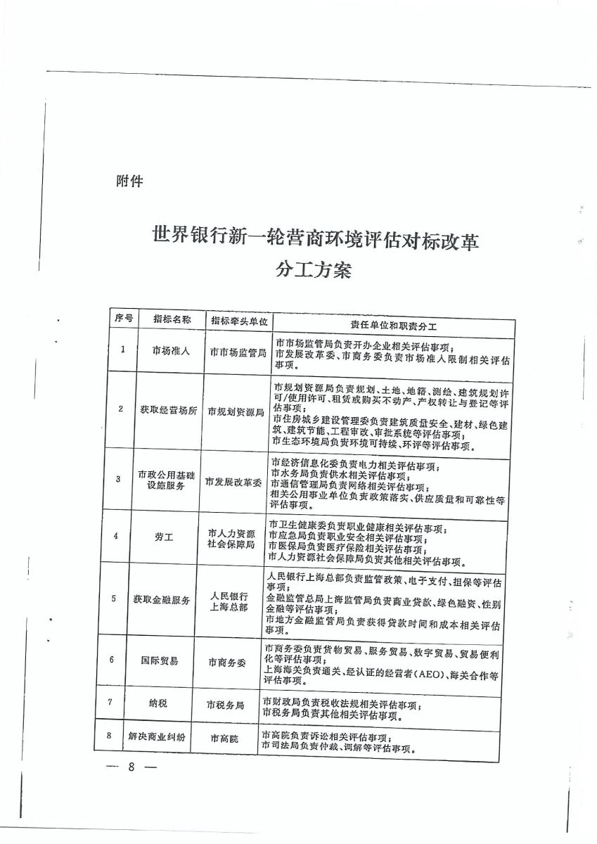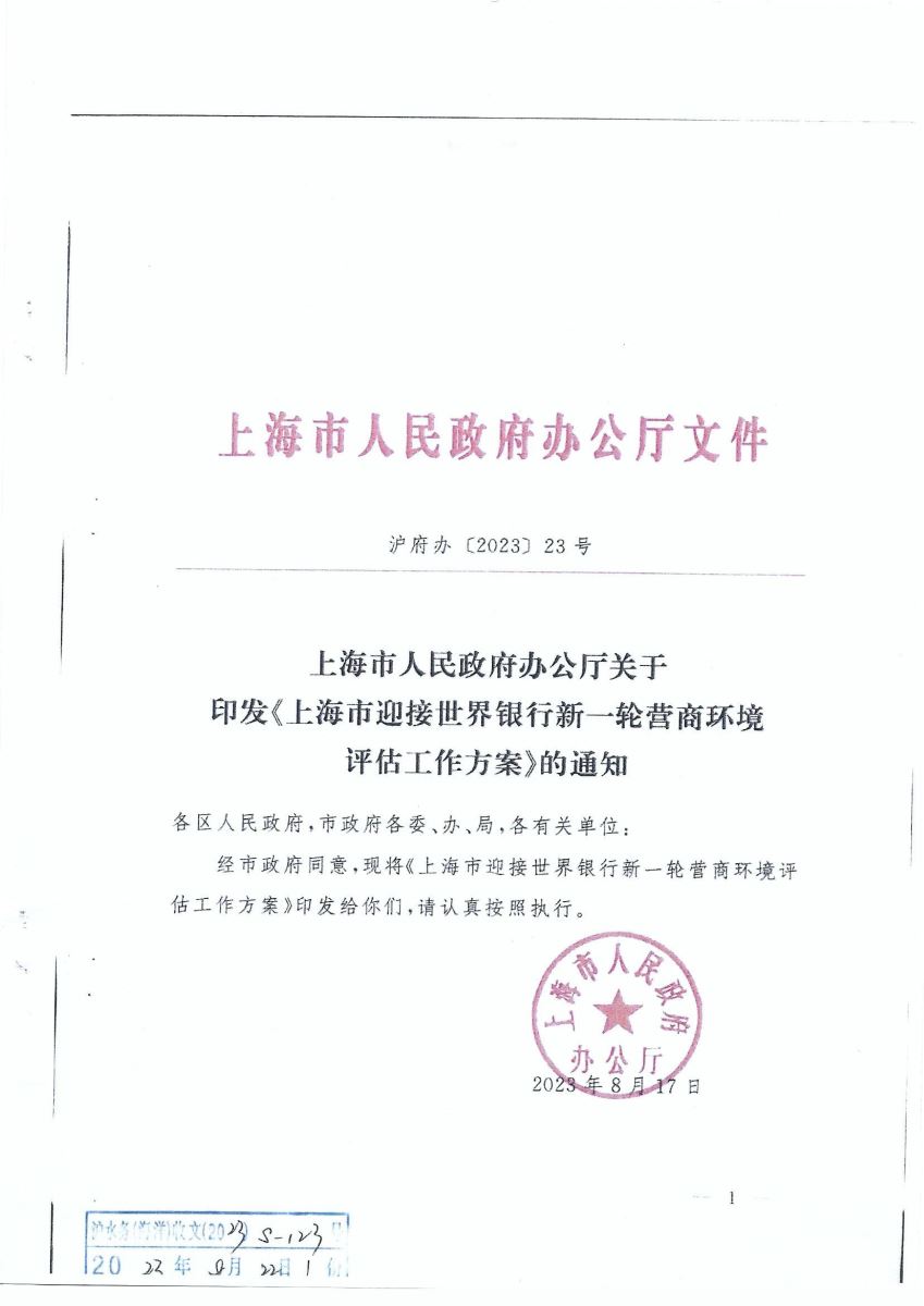 上海市人民政府办公厅关于印发《上海市迎接世界银行新一轮营商环境评估工作方案》的通知